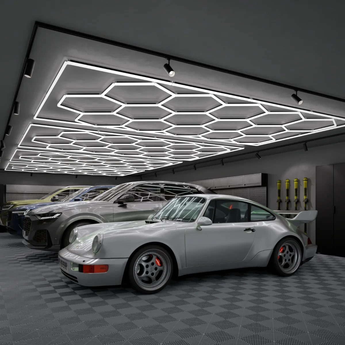 Ge ditt garage ett lyft med IVON® Hexagon-belysning. Med ett modernt honeycomb-mönster och ett kristallklart ljus med färgtemperatur 6000K skapar vår LED-armatur en exklusiv och funktionell miljö. Anpassningsbar storlek och enkel installation gör det lätt att skräddarsy ljuset efter just ditt garage. Upplev en WOW-känsla varje gång du öppnar garageporten.