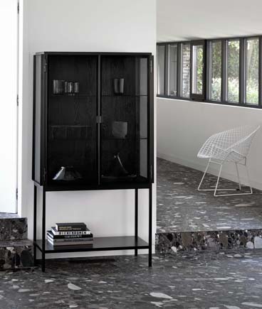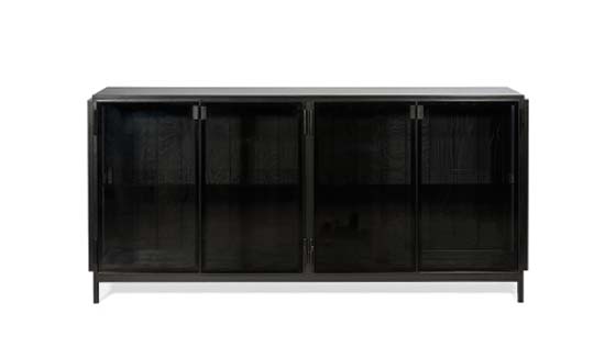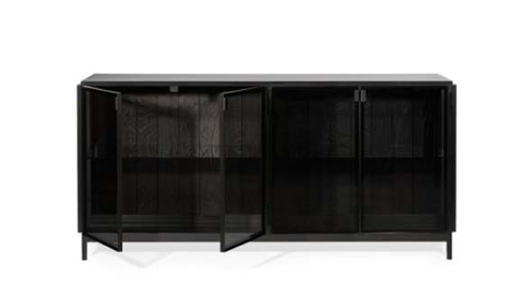 Skåp och sideboards i stål och tempererat glas.