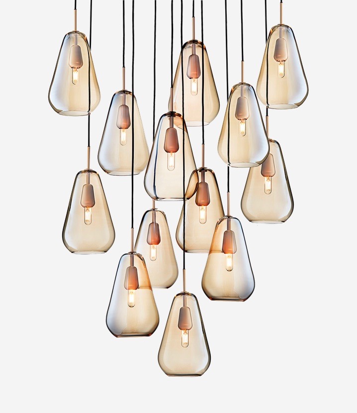 Elegant taklampa med 13 ljuskällor i dansk design. Designer Sofie Refer försöker att återskapa det nordiska ljuset inne i hemmet. Anoli ger både ett mysigt, dämpat ljus uppåt genom glaset samt ett nedåtriktat arbetsljus. Metallfärg: gold Lampan är tillverkad av handblåst glas och pulverlackerad stål.