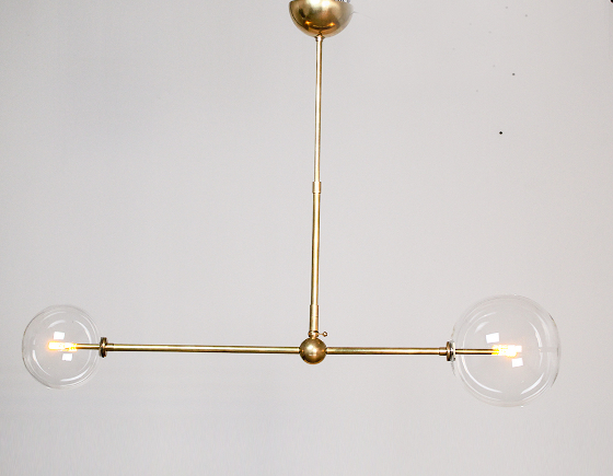 Taklampa i ren mässing och glas. En mindre glaskupa och en lite större. Ljuskälla ingår.