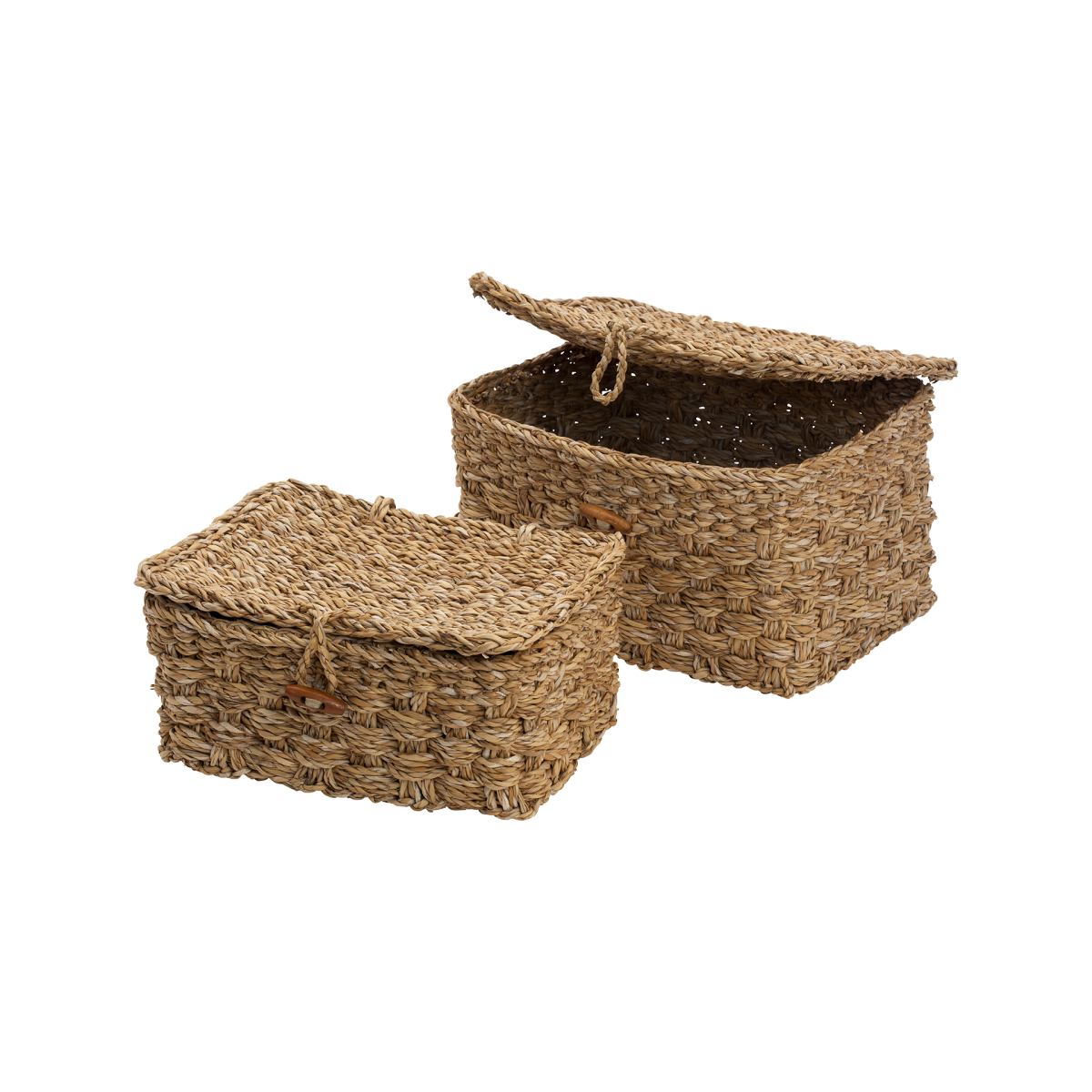 Basket in robust braided seagrass for storage. Without a framework, this will be a softer basket that is perfectly imperfect.