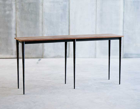 Konsoll i ek och metall.