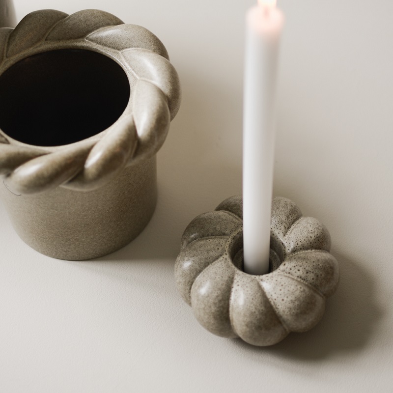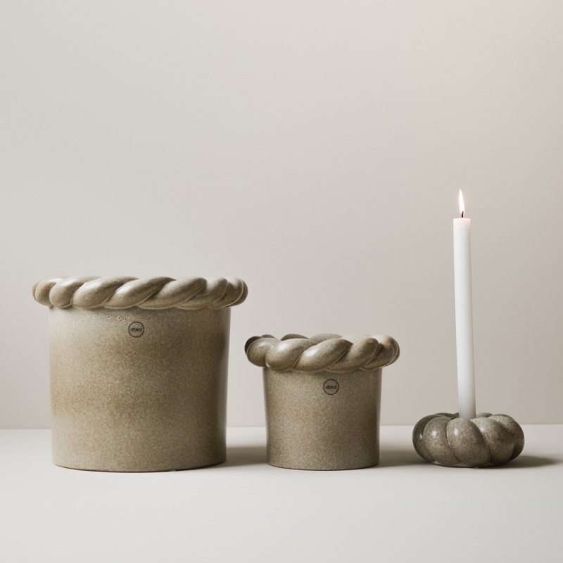 Twine en ljusstake med vriden kant. Den kan användas med både värmeljus och kronljus.