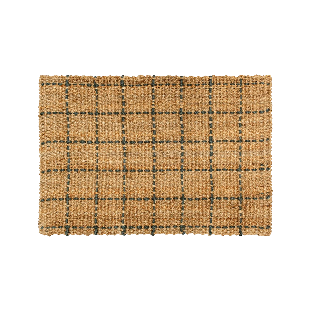 Handspunnet jutegarn vävs av skickliga indiska hantverkare till en vacker rutmönstrad dörrmatta. Undersida bestruken med naturlatex.