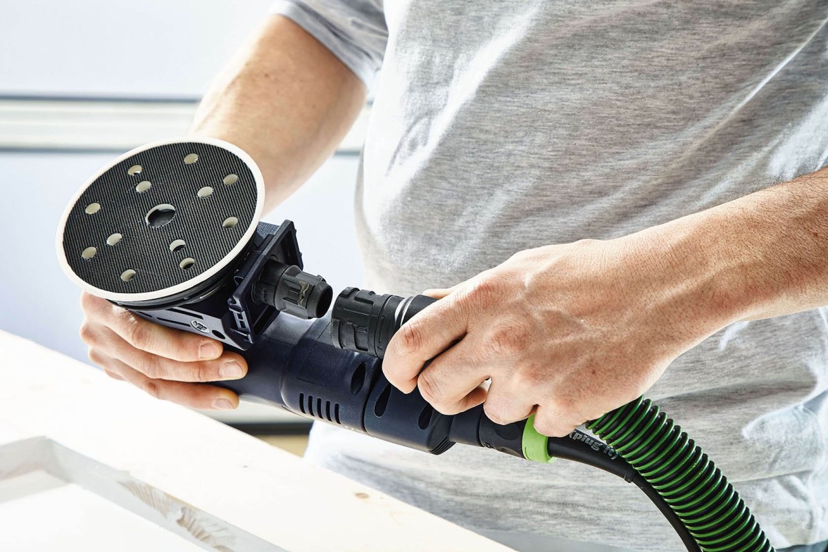 - Med plug it-nätadaptern som slipmaskin med obegränsad drifttid i kontinuerlig eldrift – perfekt i kombination med en Festool dammsugare inomhus