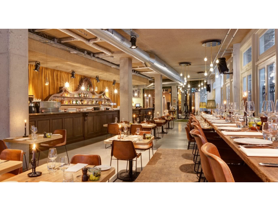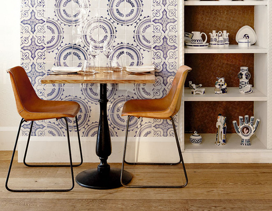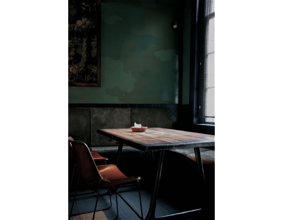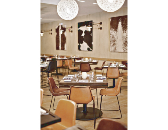Matstol med sits i läder och underrede av stål, finns i färgerna natur, brunt och svart. Finns även som barstol.