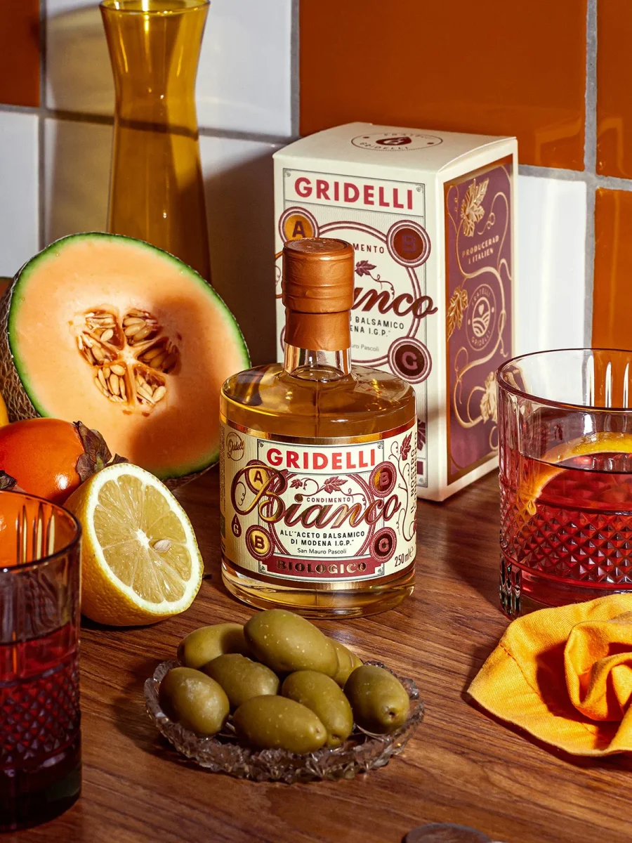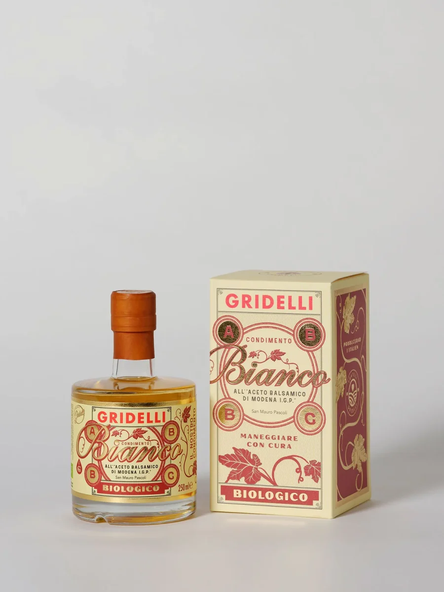 Ekologisk vit balsamico, gjord på gröna druvor från Emilia-Romagna. Denna produkt är inte lagrad vilket ger den en härligt spritzig/fruktig känsla och smak. Innehåller inget tillsatt socker, färgämnen eller övriga tillsatser. God ihop med olivolja till en grön sallad, att ringla över potatis, grönsaker eller fisk som skall in i ugnen. Jättegod att ringla över en fruktsallad och gifter sig extra bra med apelsin, melon och jordgubbar.