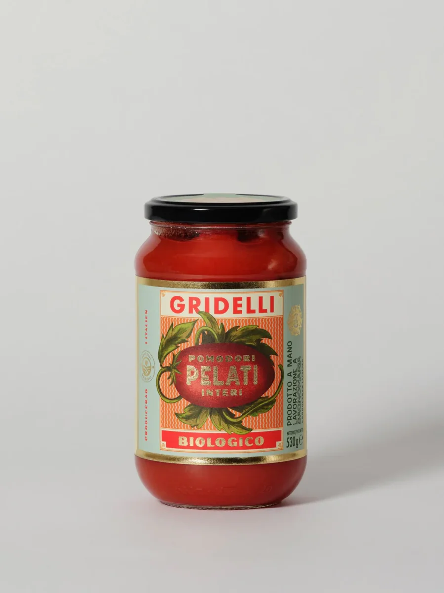 Hela, ekologiska Roma-tomater, skalade till perfektion. Romatomaten är den främsta inom italiensk kokkonst och var en stapelvara i våra mormödrars kök, oavsett om det gällde att skapa mustiga grytor, göra delikata pastasåser eller skapa enkla kryddor som komplement till kvällens kötträtt. Tomaterna har ett robust fruktkött, minimalt med frön och en mild syra som ger en harmoniskt fyllig och söt smak. Tomaterna skördas för hand, mognar i solen och konserveras i vattenbad på burk samma dag, vilket garanterar färskhet och kvalitet i varje tugga.