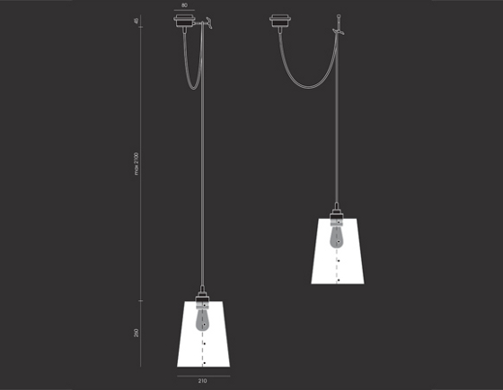 Välj själv hur du vill hänga armaturen med hjälp av specialdesignad krok i matchande metallfärg. Kabel och takros i matt svart gummi.