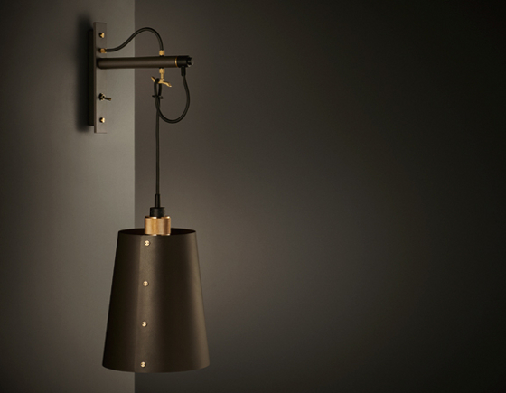 Exklusiv vägglampa med mässingsdetaljer och stor skärm i antracitgrå lackad metall. Höjden kan justeras med hjälp av specialdesignad krok i mässing. Allt började i ett garage i östra London. Med allt från armaturer till motorcyklar och skinnjackor till möbler uttryckte de sin personlighet på det enda sättet de kände till – genom att lyfta det […]