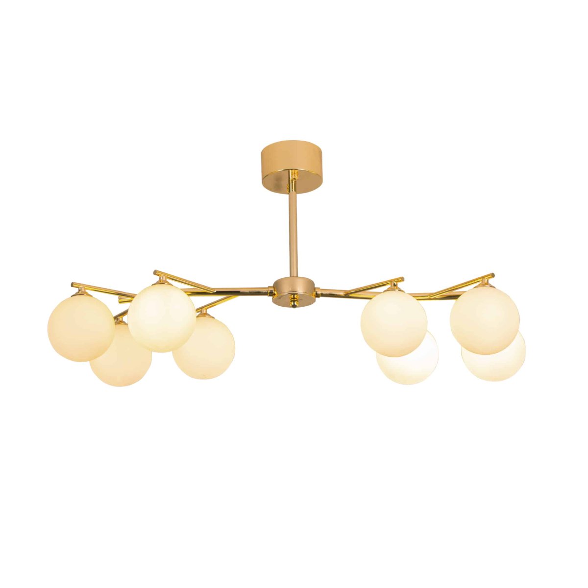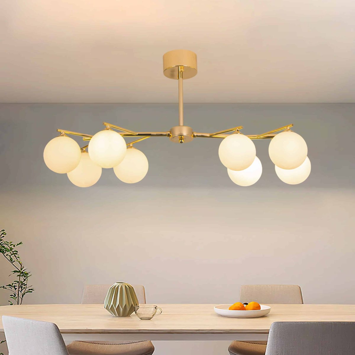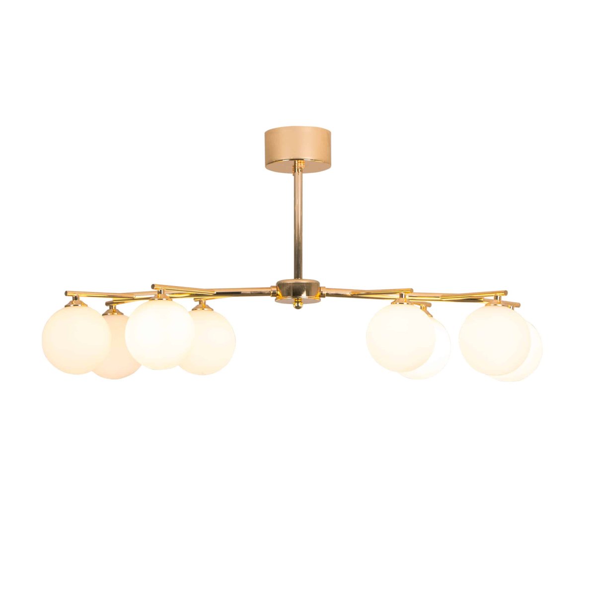 Joline taklampa kombinerar sofistikering med modern stil, som mäter 88 cm i längd. Denna slående armatur är tillverkad av förstklassig metall och glas i en lyxig guldfinish, vilket ger en touch av elegans till alla rum. Den har åtta G9-lampsocklar , vilket säkerställer strålande belysning över utrymmen som matsalar eller vardagsrum. Dess rena design och storslagna skala gör den till ett iögonfallande komplement till moderna interiörer. Perfekt för dig som söker både stil och funktion i belysning.