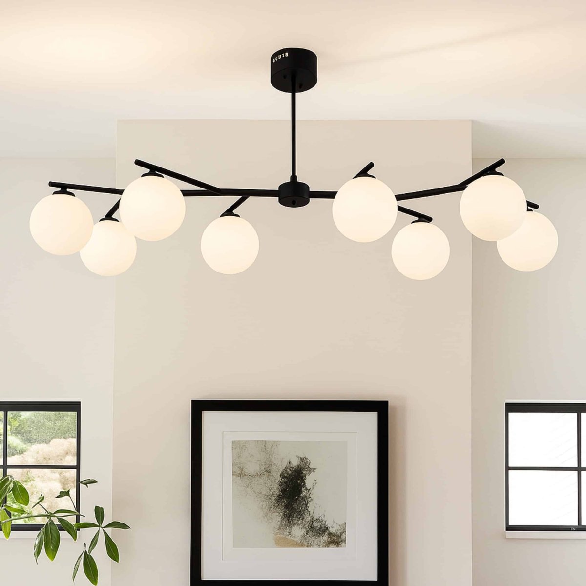 Joline taklampa kombinerar sofistikering med modern stil, som mäter 88 cm i längd. Denna slående armatur är tillverkad av förstklassig metall och glas i en lyxig mattsvartfinish, vilket ger en touch av elegans till alla rum. Den har åtta G9-lampsocklar , vilket säkerställer strålande belysning över utrymmen som matsalar eller vardagsrum. Dess rena design och storslagna skala gör den till ett iögonfallande komplement till moderna interiörer. Perfekt för dig som söker både stil och funktion i belysning.