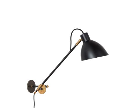Vägglampa i mässing, stål och plåt. En lampa med en historia från 1926, då den tillverkades för första gången.