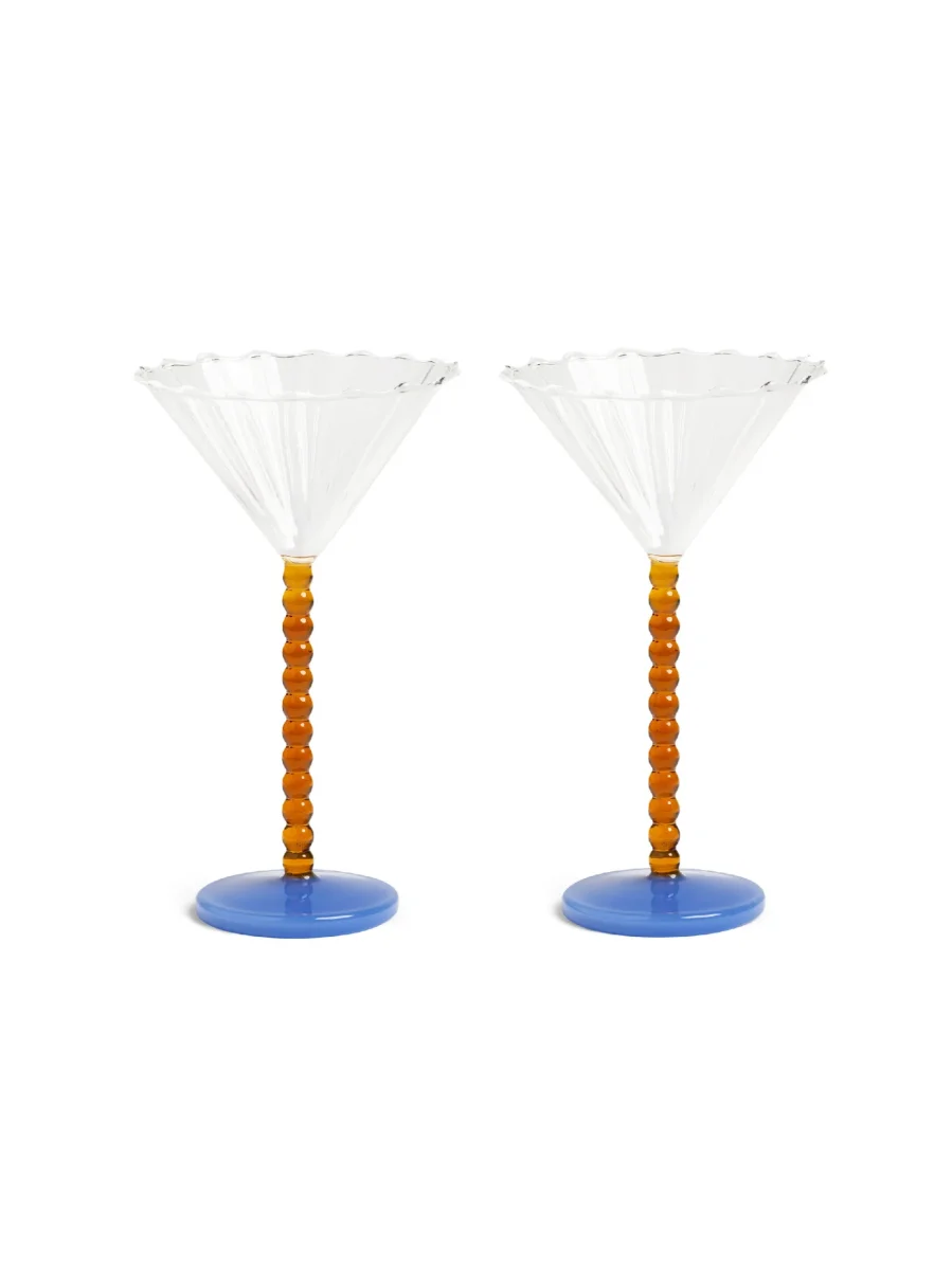 Det fantastiska utseendet hos denna uppsättning med två böjda coupéglas gör dem lämpliga för alla speciella tillfällen. Coupéerna är gjorda av fint glas, med det färgade glaset och den subtila formen som ger dem ett unikt utseende. Dessa imponerande kupéer kan användas till champagne, vatten och andra drycker, såväl som till glass och desserter.