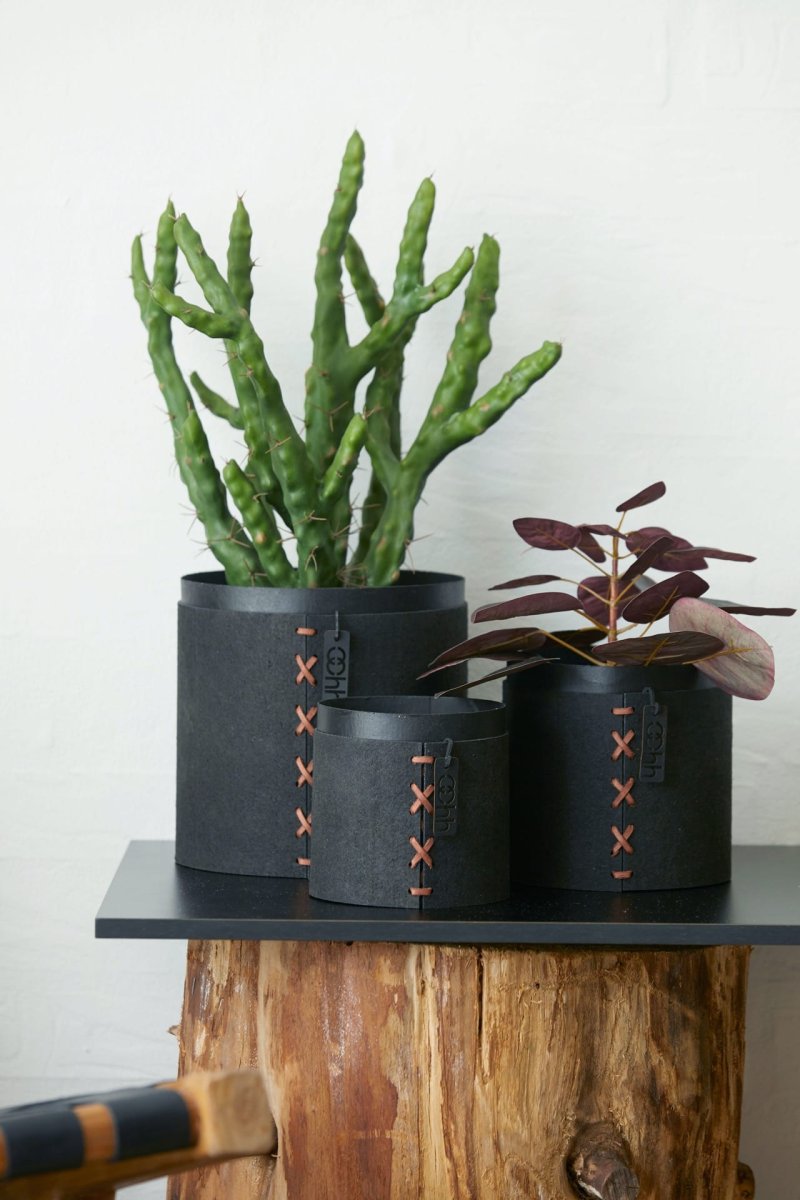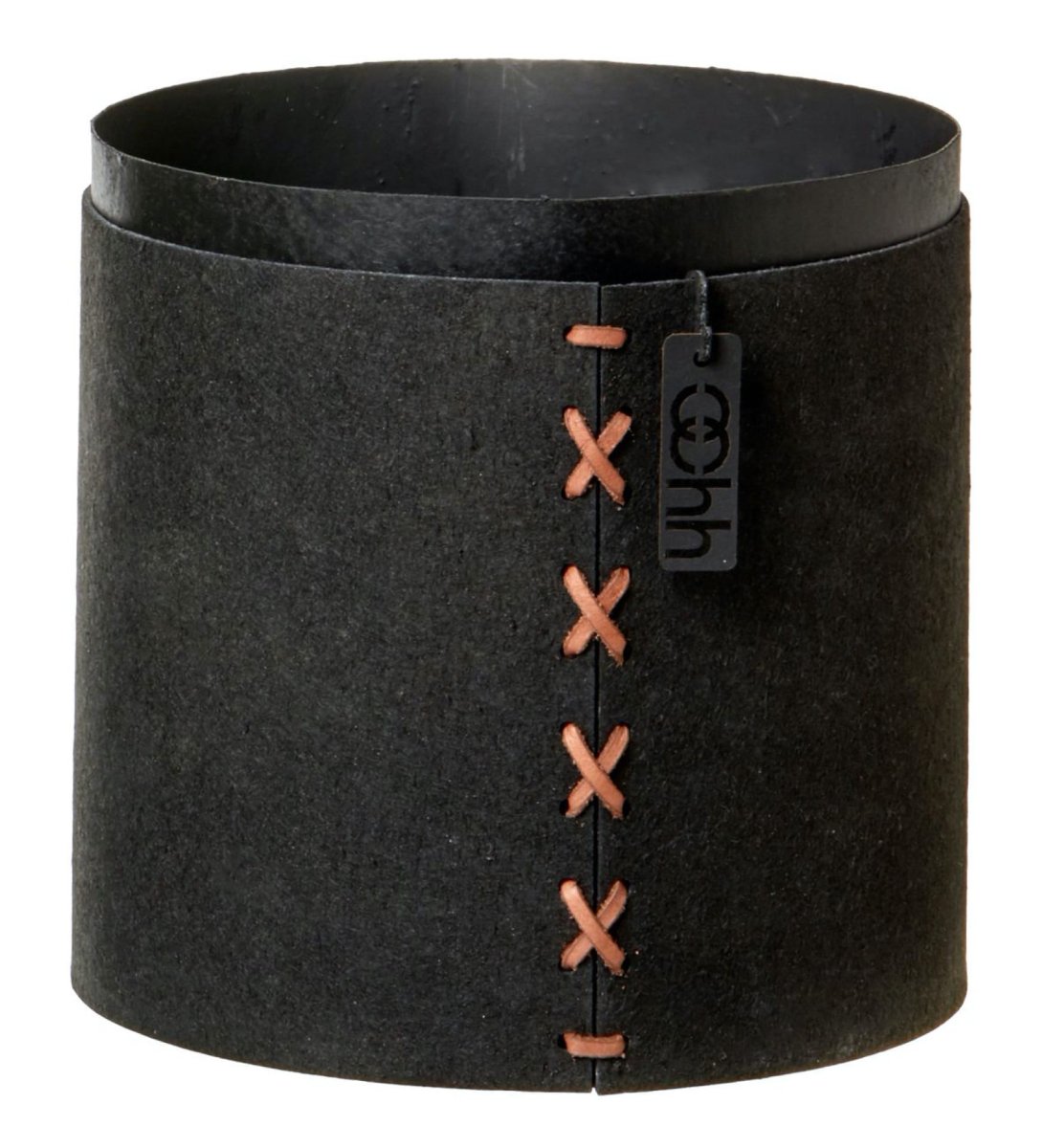 En vattentät kruka med fina detaljer av korsstygn. Denna krukan är en kombination av en Oohh återvunnen papperskruka och återvunnen Ekofilt kruka. Innehåller alltså material av både återvunnet papper och plast.