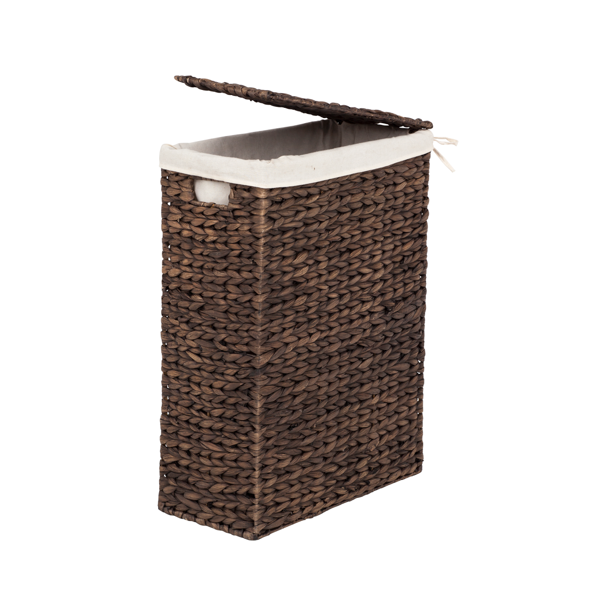 Brunlaserad handflätad snygg och lättplacerad tvättkorg med lock. Smart till återvinning för exempelvis tidningar, burkar och PET flaskor. Tvättbar bomullspåse ingår. Flätad runt stålram för bästa hållbarhet.