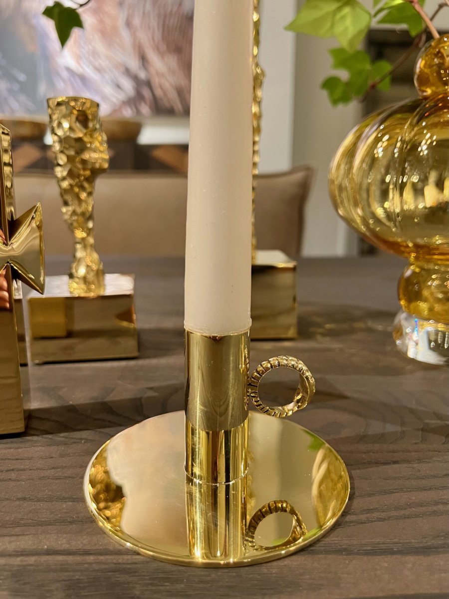 En vacker ljusstake som är designad av Maria Nilsdotter. Material: Polished Brass Mått: H: 6cm O: 10,5 cm