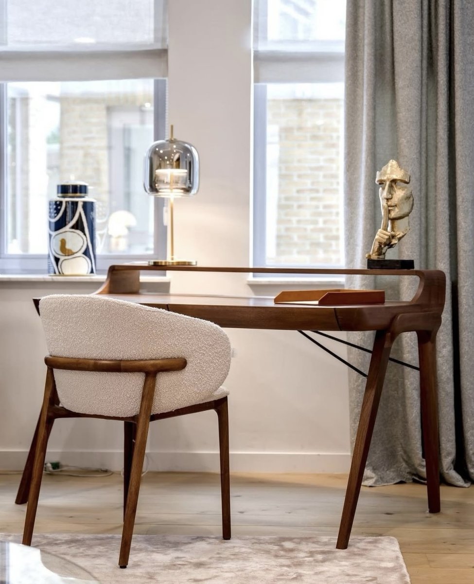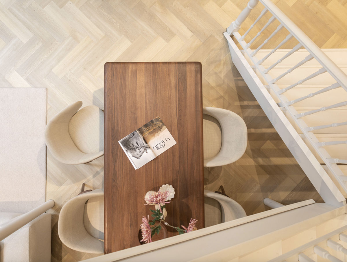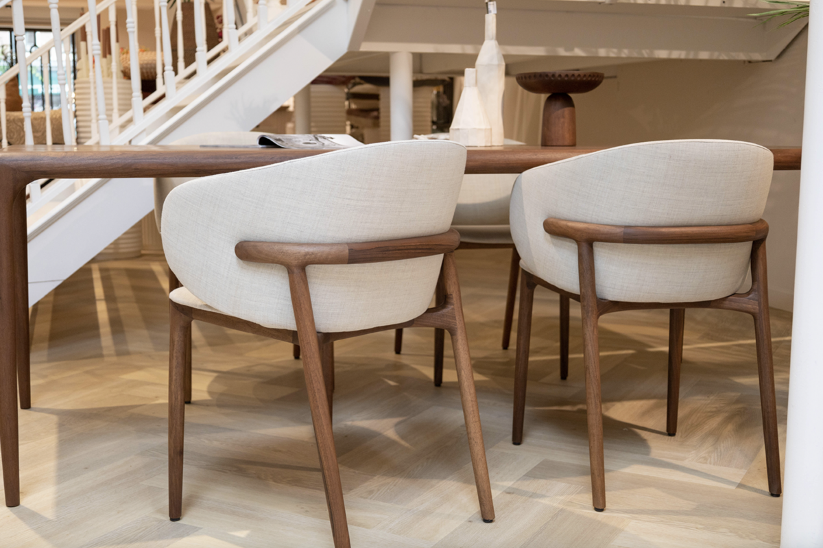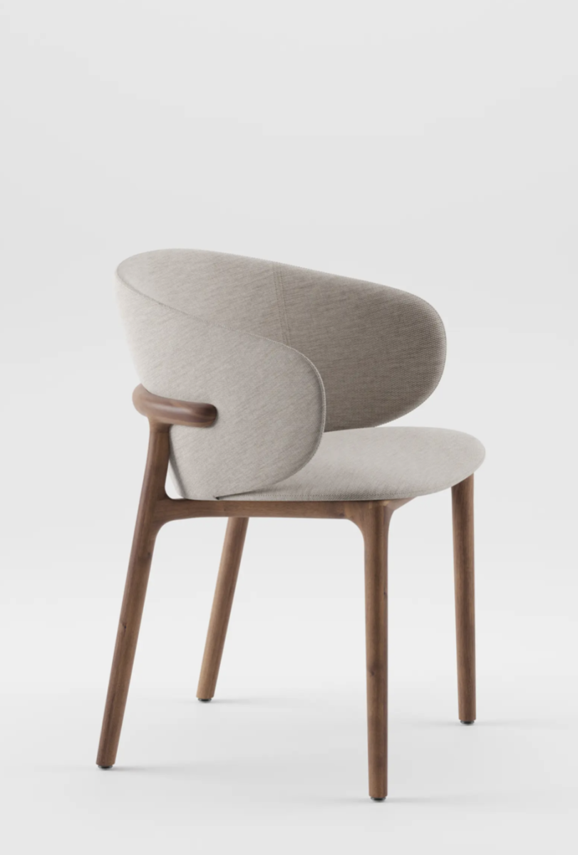 Mela är syskonstolen till Neva och finns i både valnöt och ek. Med stoppad sits och rygg ger den en skön, omfamnande komfort runt matbordet. Den eleganta designen tillsammans med det noggranna hantverket gör Mela till en lyxig stol som håller i många år.