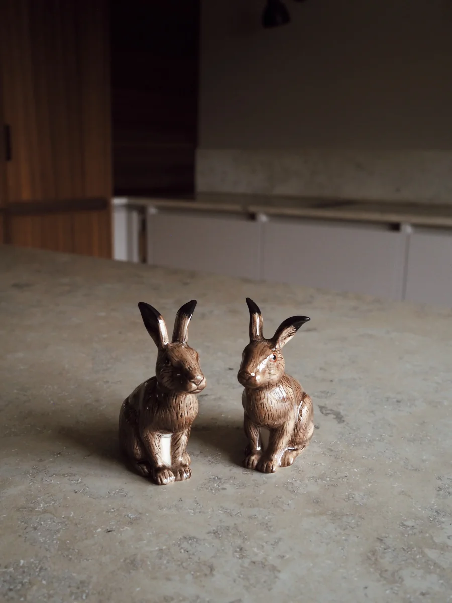 Handmålade salt och pepparkar i keramik med raffinerade och autentiska detaljer.