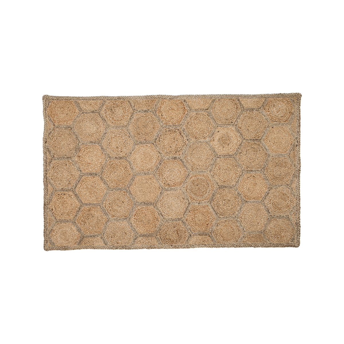 Hand-spun jute yarn is braided by skilled Indian craftsmen. The braid is sewn into a beautiful pattern.