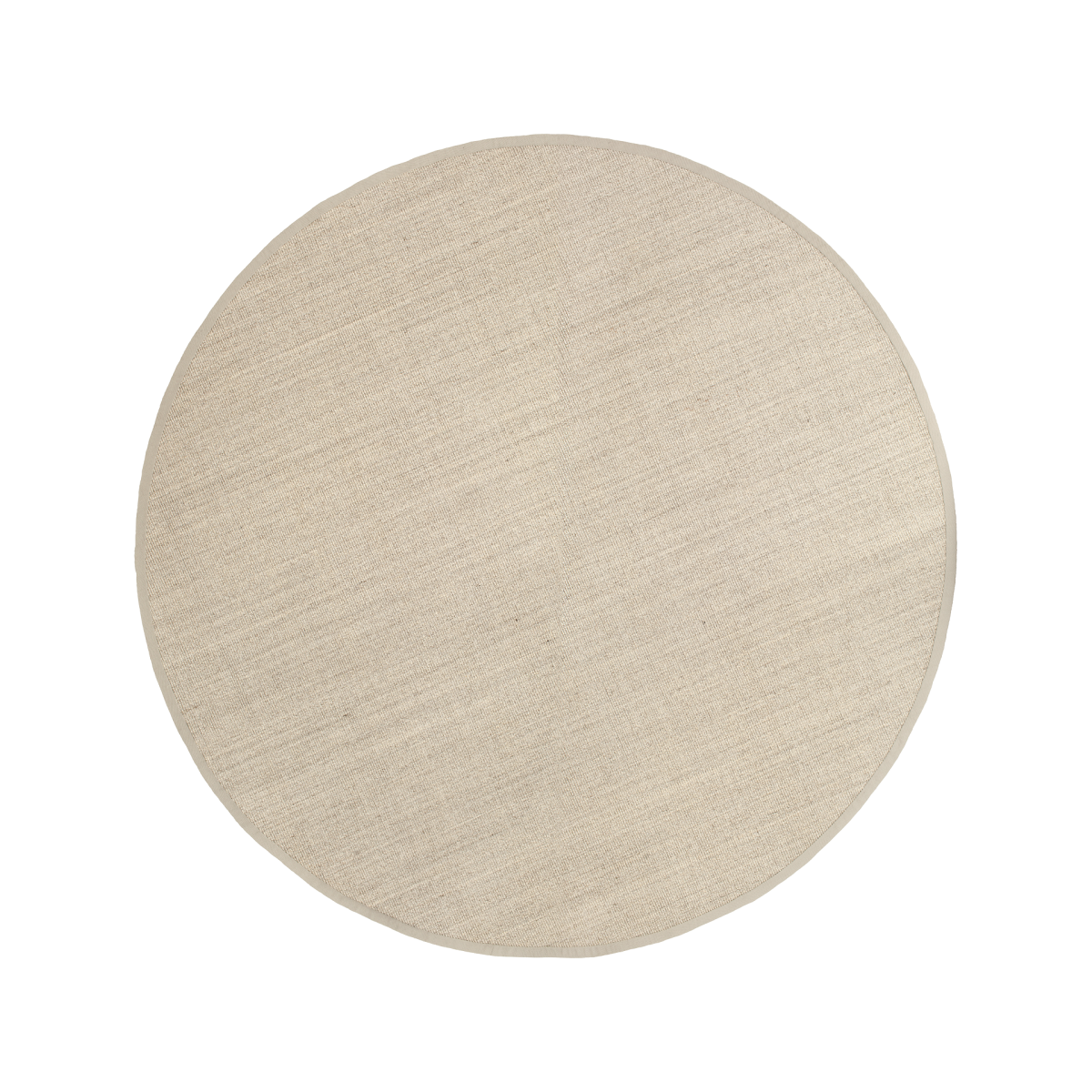 Slitstark stor rund matta av sisal med kant i sandfärgad bomull. För att mattan ska ligga snyggt på golvet är undersidan bestruken med naturlatex. Uppfyller kraven för OEKO-TEX STANDARD 100.