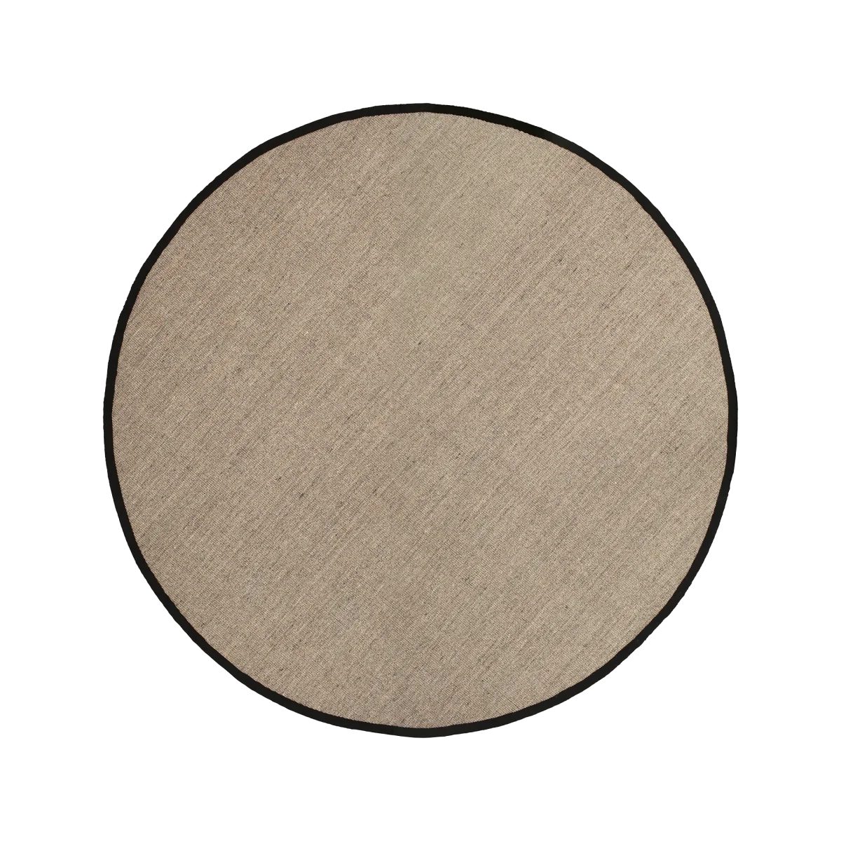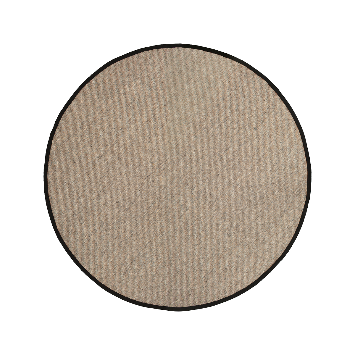 Slitstark stor rund matta av sisal med kant i svart bomull. För att mattan ska ligga snyggt på golvet är undersidan bestruken med naturlatex. Uppfyller kraven för OEKO-TEX STANDARD 100.