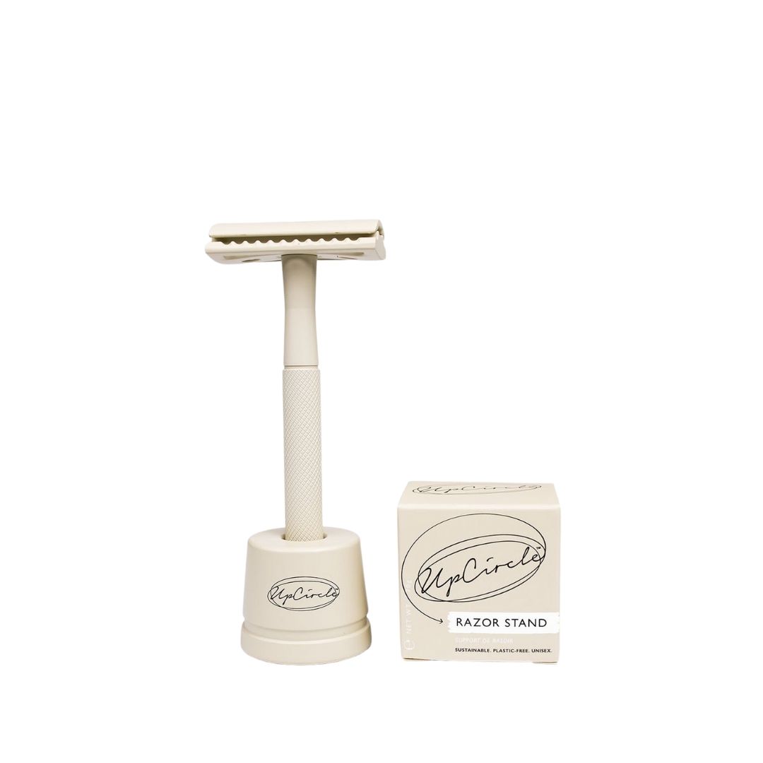 Säkerhetshyvelställ i aluminium för säker och hygienisk förvaring av din rakhyvel. Detta rakhyvelställ är 100 % plastfritt. Snygg att ha framme i badrummet och den passar till vår säkerhetsrakhyvel från Upcircle Beauty som du hittar här.