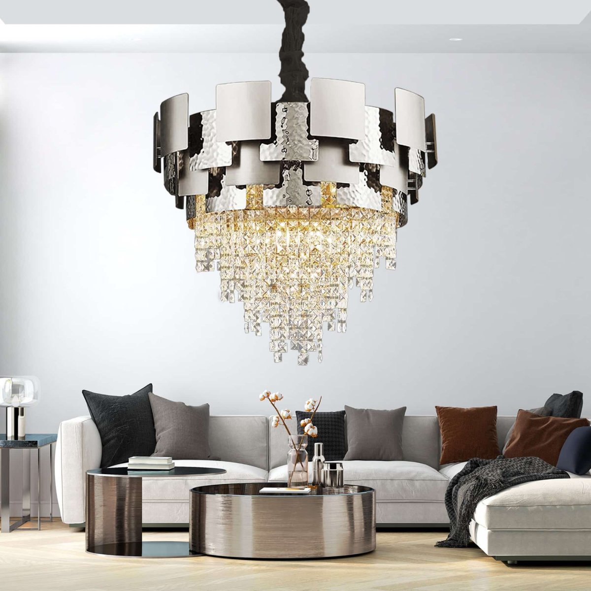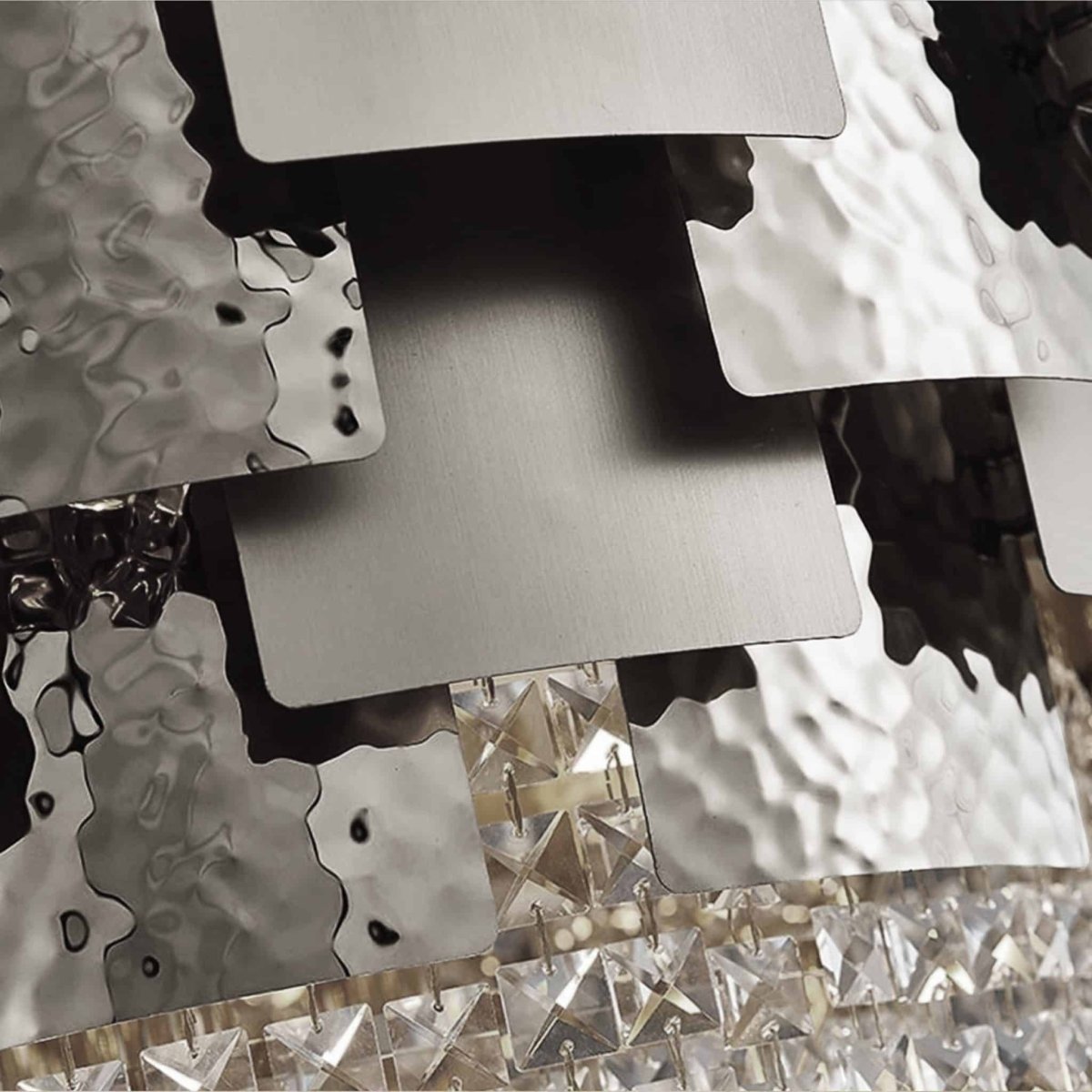 Selma taklampa rund är en mycket elegant kristallkrona som förgyller både det moderna hemmet likaväl som det mer klassiska rummet med sin luxuösa och imponerande design. Taklampans stomme är tillverkad av kromfärgade metallplattor och smyckad med ett flertal kvadratiska mindre prismor som hänger i klasar runt hela armaturen. Selma ger en känsla av modern industriell design samt skapar en tidlös känsla i alla rum du väljer att hänga armaturen i.