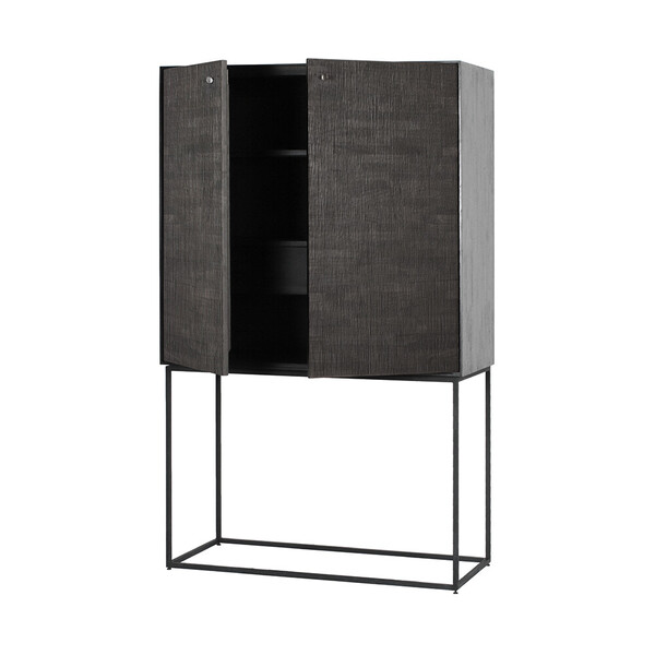 Den vackra mörka tonade teaken fortsätter på insidan, där hyllor och lådor kommer att hålla dina mest älskade föremål.