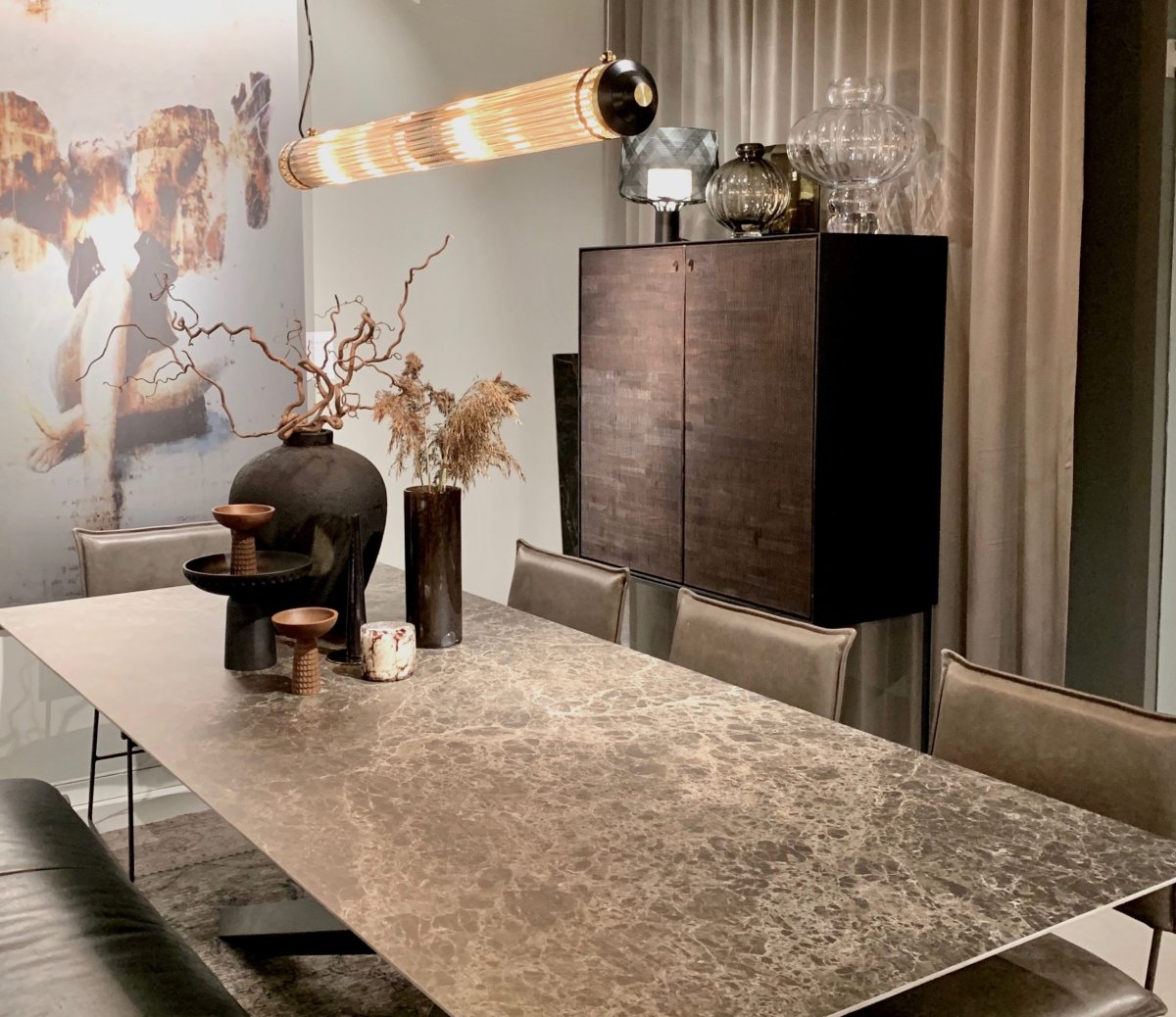 Grooves skåp där varje enskild linje du ser är handskuren, vilket gör varje bit verkligt unik.