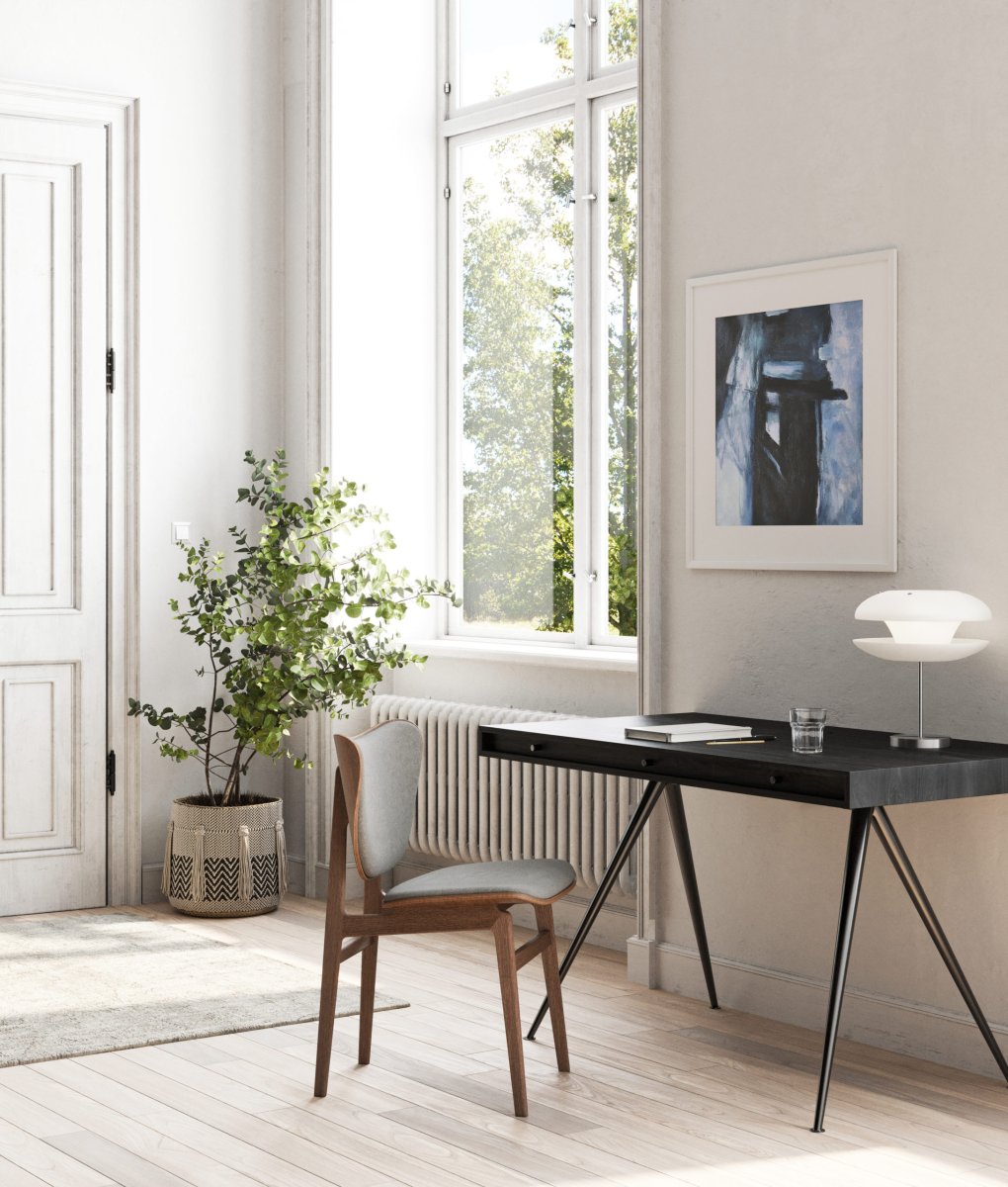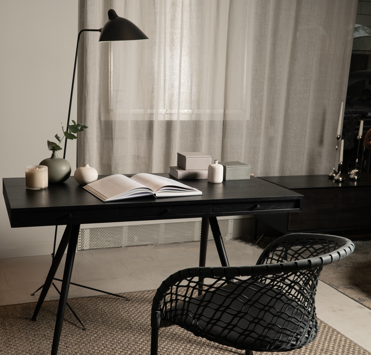 Med sin rena och enkla design är det 60-talsinspirerade JFK skrivbordet designat för det stiliga hemmakontoret. Namnet är en hyllning till en klassisk dansk design som gavs som present till president John F. Kennedy under 1960-talet. Skrivbordet har en smal bordsskiva av askfaner med tre inbyggda lådor och står elegant placerat ovanpå fyra koniskt formade […]