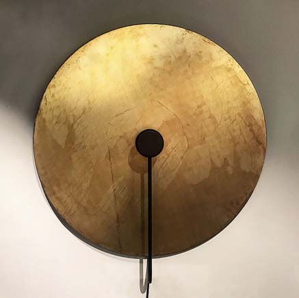 Vacker vägglampa med insida av råmässing, skapad av den prisbelönta designern Sami Kallio.