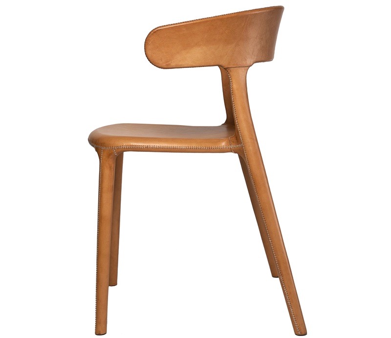 Matstol klädd i läder. Finns i natur, mörkbrunt, svart, orange och rött läder.