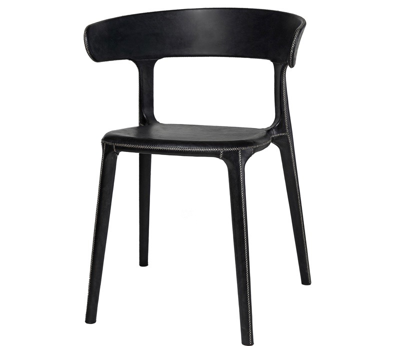 Sömnadsdetaljerna och det oljade lädret skapar en rustik kontrast till stolens slanka moderna siluett och återkopplar till hantverkets genuina ursprung.