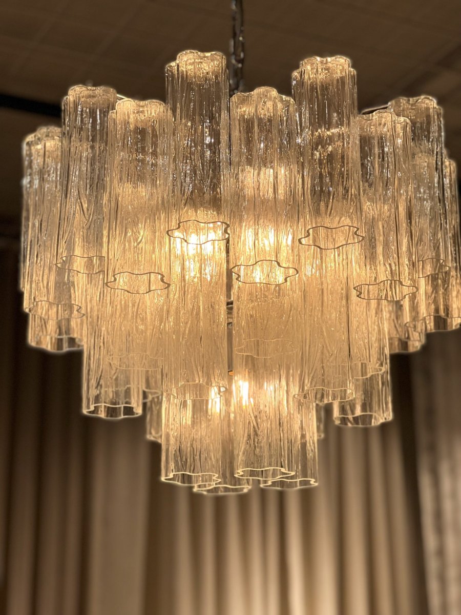 Tronchi är en exklusiv elegant taklampa med ett riktigt glaskonstverk. Den eleganta taklampan skapar effektiv belysning i rummet och sätter personlighet i ditt rum. Tronchi består av flera ljuskällor inuti de högkvalitativa Murano-glascylindrarna som finns i flera olika färger.
