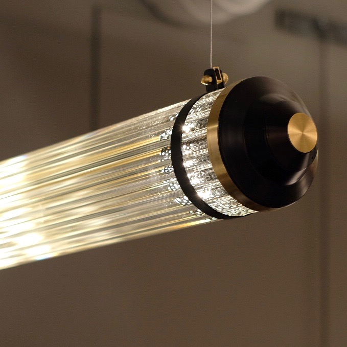 lika väl hemma som i en offentlig miljö. I svart, mässing och glas, med en blinkning åt Art Deco.