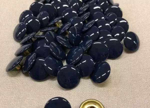 Tryckknapp i mörkblå färg med hatt. Högkvalitativ tryckknapp för kapell och presenningar.