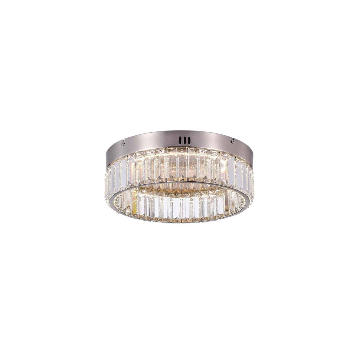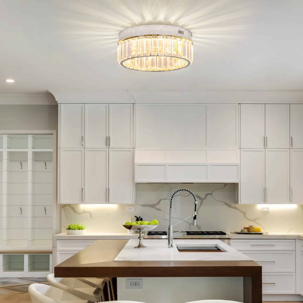 Tyra Takplafond kombinerar stil och funktionalitet med sin moderna design och krom-finish. Med en diameter på 30cm och en höjd av 12cm är den perfekt för både små och stora utrymmen. Lampan är utrustad med energieffektiv LED. Den har tre färgtemperaturalternativ (3000K, 4000K, 5000K) via en enkel switch, vilket gör att du kan skapa den perfekta stämningen i ditt hem. De funklande kristallerna tillför en touch av elegans och gör den till en utmärkt val för sovrum,kök eller hall.