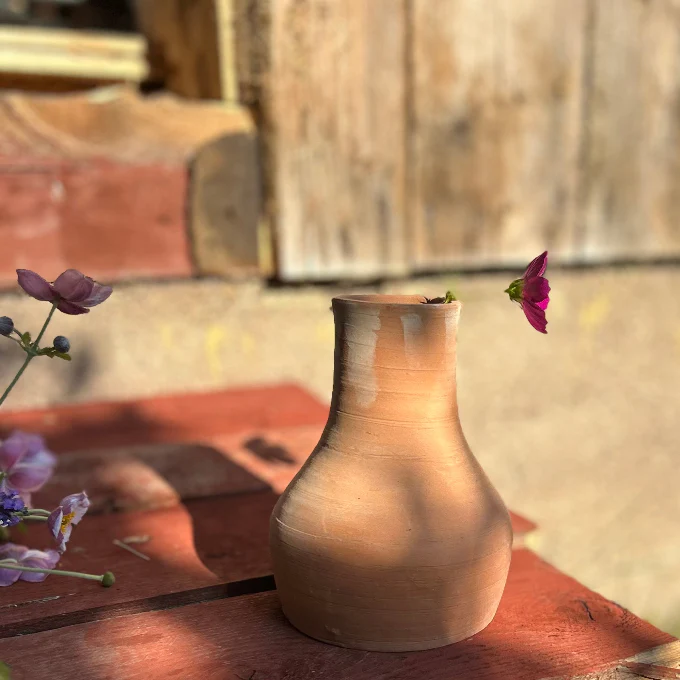 Använd den som blomvas, dekorativ detalj på hyllan eller som ett stämningsfullt inslag i din inredning. Varje vas är unik – ett äkta hantverk med själ.