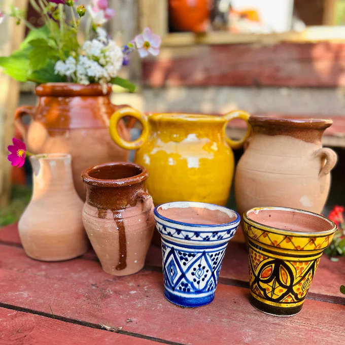 En vacker marockansk vas i naturlig terrakotta – formad för hand av skickliga keramiker i Marocko. Den varma, jordnära färgen och den rustika ytan ger vasen en tidlös karaktär som passar lika bra i hemmet som i trädgården.