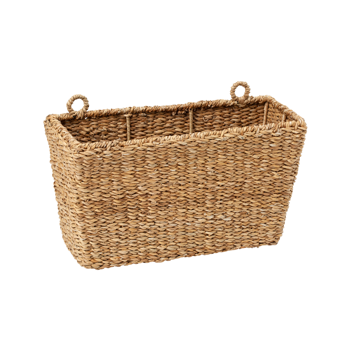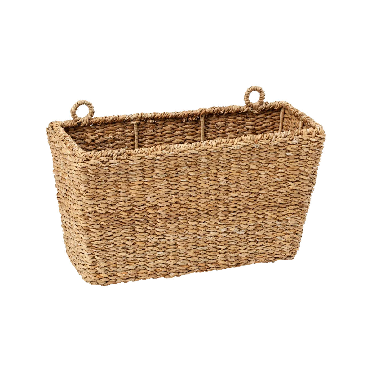 Hand braided basket to hang on the wall. Braided around steel frame for best durability.