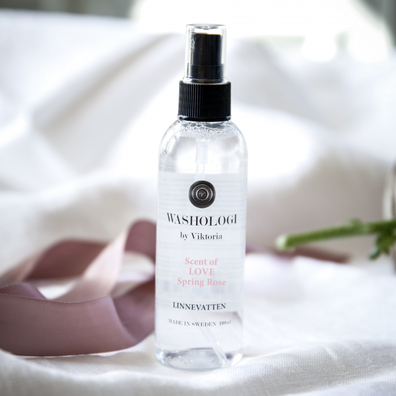 Washologi’s Linnevatten Love har en mjuk och behaglig doft av vårros, med sin närande effekt ger det dina plagg en nytvättad känsla.