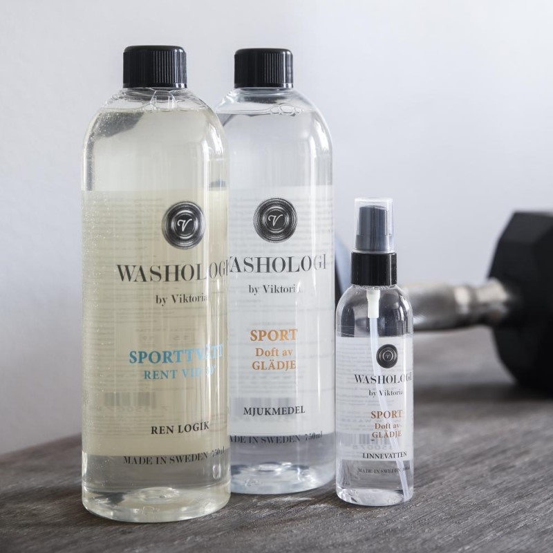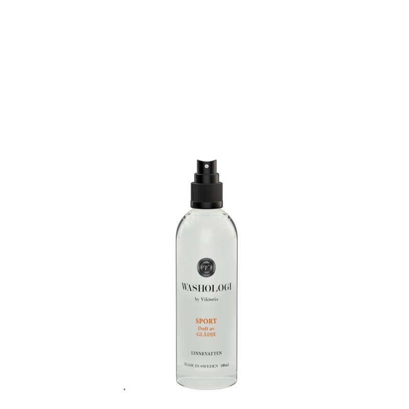 Washologis linnevatten Sport ljuvligt doftande och vårdande, ger en nytvättad känsla och en berusande doft av jasmin. Använd som en uppfräschning av dina funktionskläder, träningsskor eller i träningsväskan. Används helt enkelt till allt du vill ska dofta gott! För miljöns skull innehåller våra linnevatten inga färgämnen eller polycyklisk musk och vi använder endast naturligt extrakt i parfymen. Minskar statisk elektricitet.
