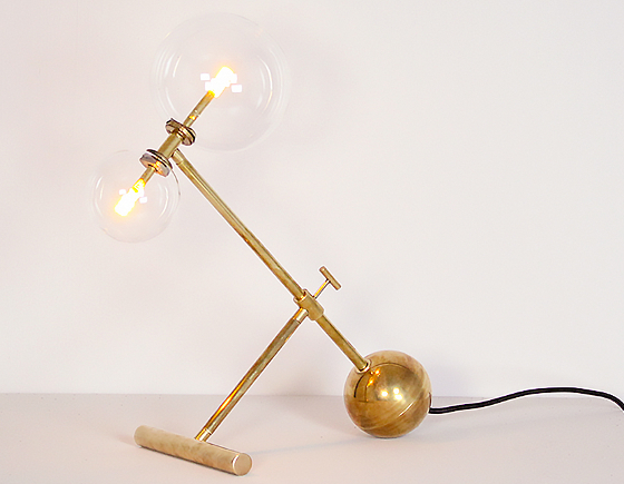 Bordslampa i ren mässing och glas. Sladd 2 m. Ljuskällor ingår.